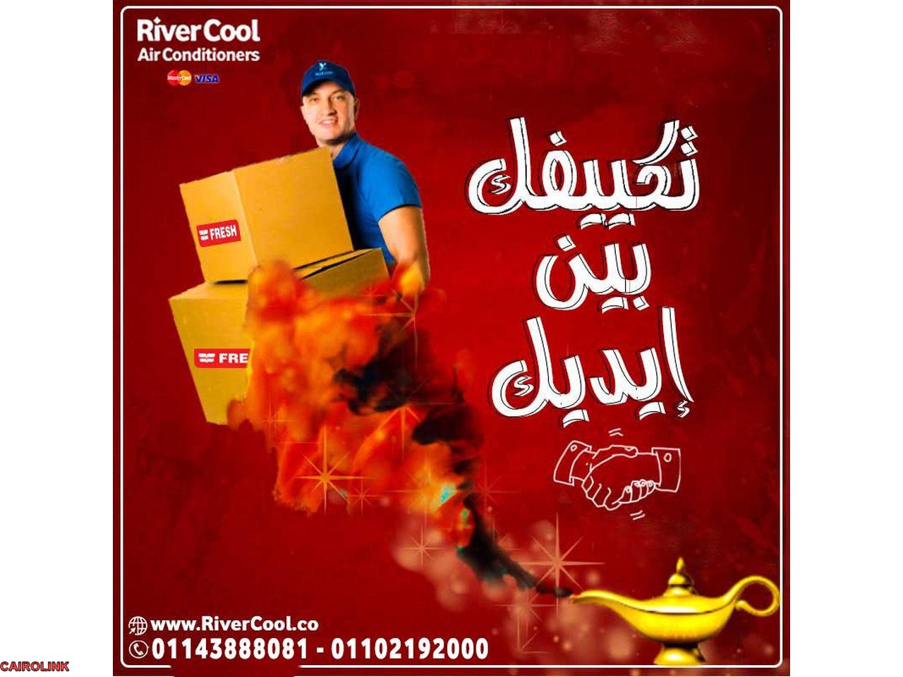 ومع ريفر كول، تقدر تقسط ثمن التكييف بسهولة عن طريق فيزا مشتريات من بنك مصر أو بنك القاهرة، أو عبر أبلكيشن موبيل فاليو، أمان، سهولة، فرصة، أو كونتكت.