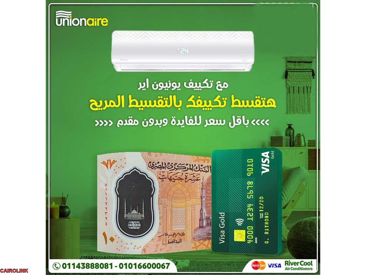 ومع ريفر كول، تقدر تقسط ثمن التكييف بسهولة عن طريق فيزا مشتريات من بنك مصر أو بنك القاهرة، أو عبر أبلكيشن موبيل فاليو، أمان، سهولة، فرصة، أو كونتكت.