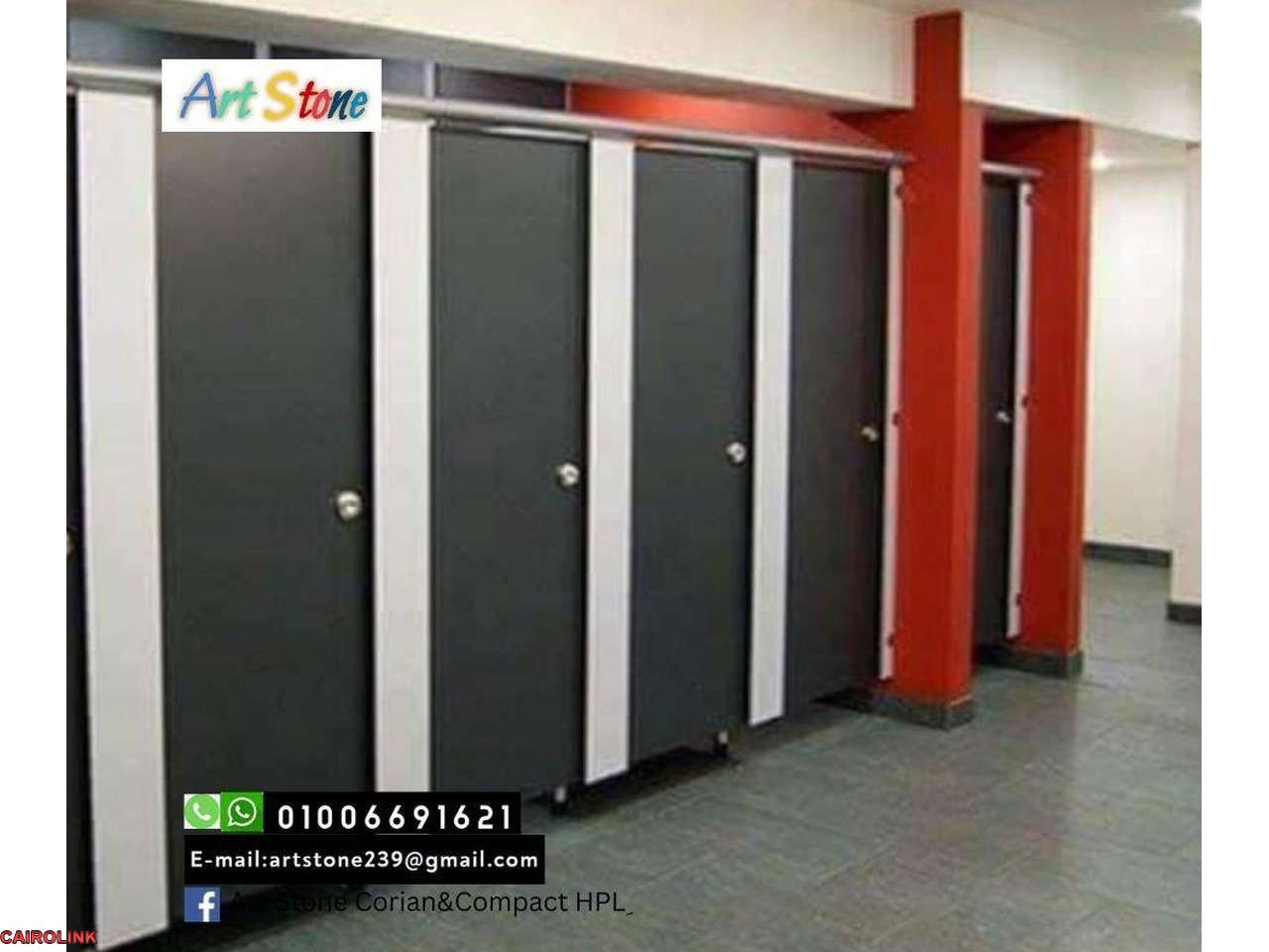 نقوم بتنفيذ #قواطيع الحمامات من #الكومباكتHPL باشكالها المتعددة والوانها المتميزة.