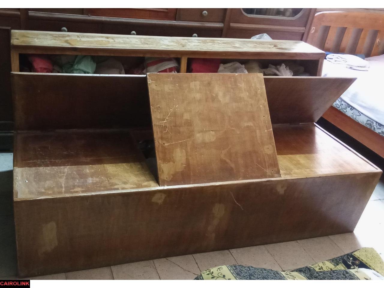 تحتها سحارة بحجم الكنبة لها غطاء سهل الفتح لحفظ الاغراض