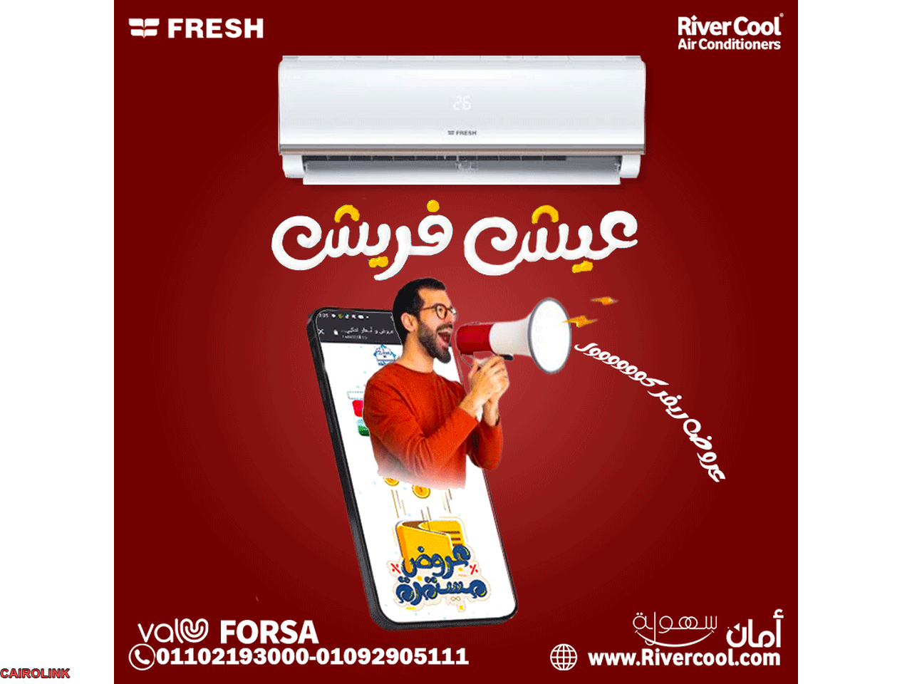 احصل على تكييف فريش الانفرتر بأقل الأسعار من ريفر كول، بسعة 1.5 حصان بارد. يتميز التكييف بشاشة ديجيتال تعرض درجات الحرارة وتنبيهات الأعطال، ويعمل بأقل جهد كهربائي مما يوفر في استهلاك الطاقة بنسبة تصل إلى 60%. كما يتميز بفلاتر تنقية الهواء من الأتربة والفيروسات.