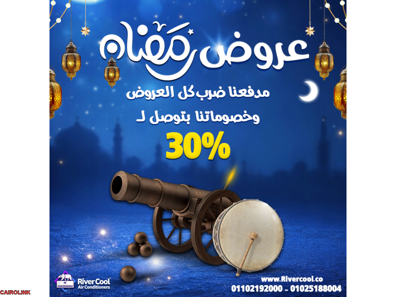 لو عايز سعر مميز وخدمة مضمونة، ريفر كول بتقدملك خصومات حقيقية حتى 30% على جميع القدرات والموديلات.