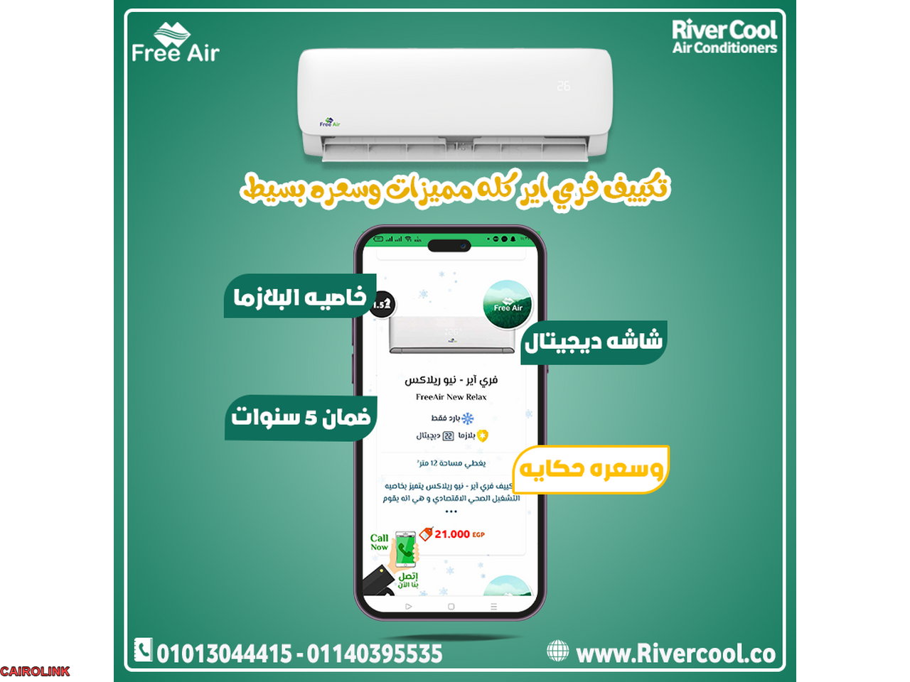 0 ج.م تكييف فري اير نيو ريلاكس 1.5 حصان – راحة مثالية في كل المواسم! بواسطة رضوي ريفر كول