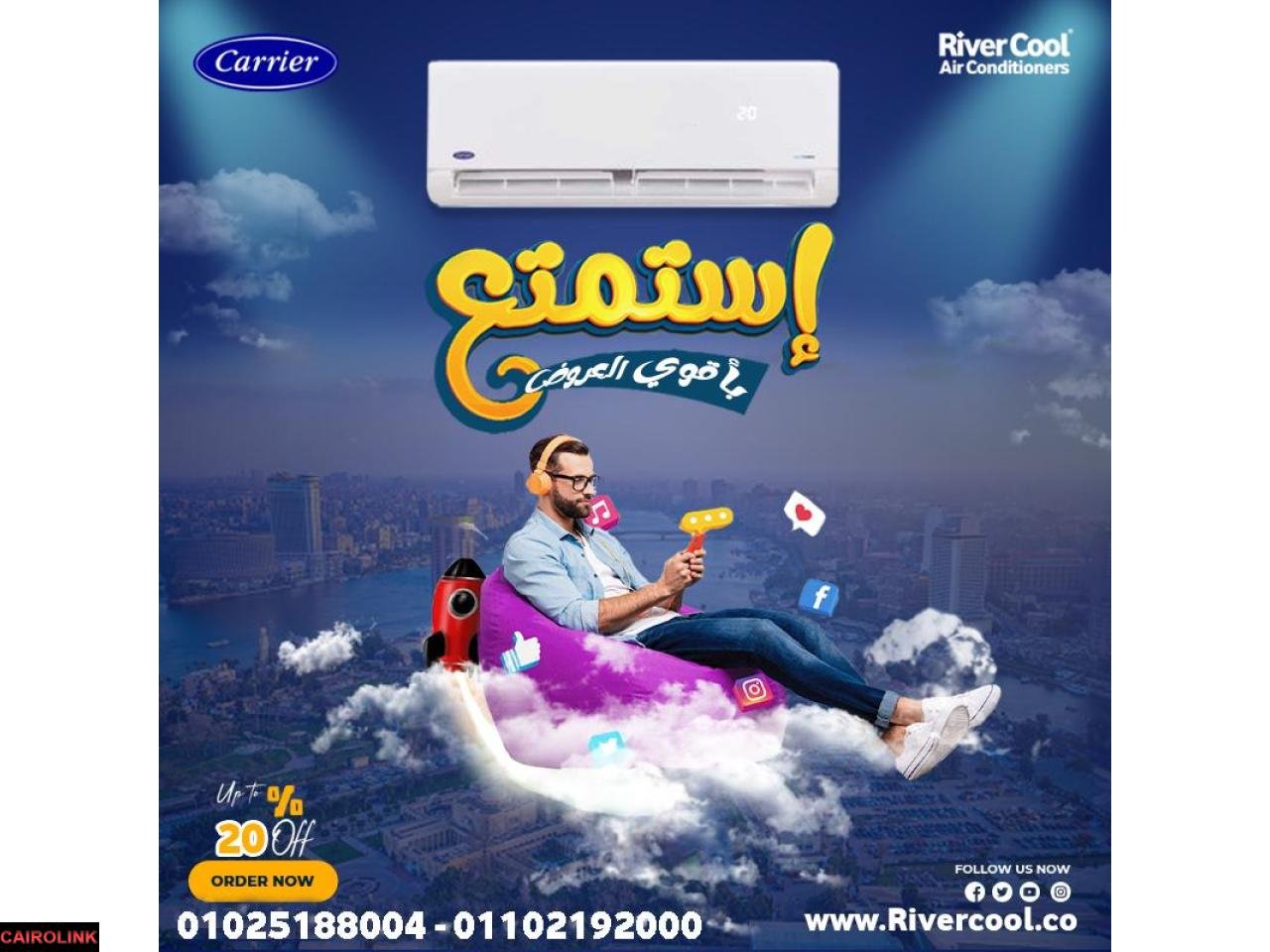 مستني إيه؟ مع ريفـر كول اطلب تكييف كاريير اوبتيماكس برو دلوقتي وهيجيلك للبيت بسهولة وسرعة.