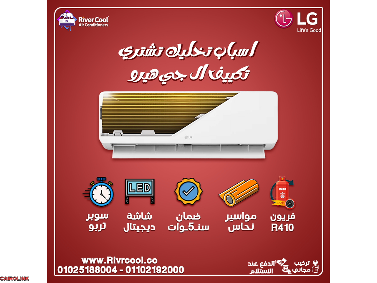 0 ج.م سعر تكييف ال جي انفرتر 1.5 حصان بارد فقط تكييف ال جي نيو هيرو بواسطة rivercool