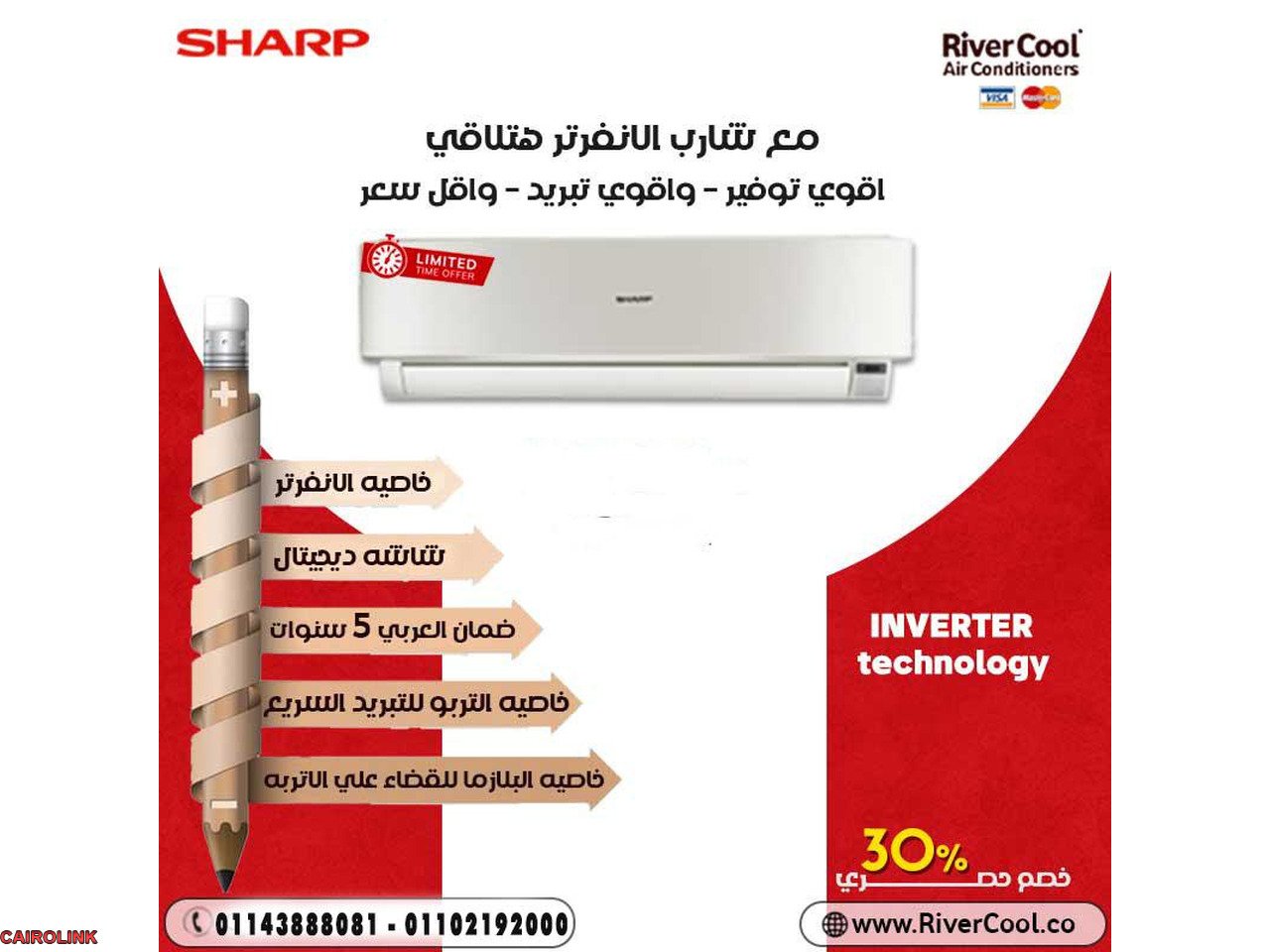لو عايز تكييف يديك هواء بارد ونقي مع توفير في استهلاك الكهرباء، تكييف شارب كلاستر إنفرتر من ريفر كول هو الحل الأمثل ليك! مميزاته: