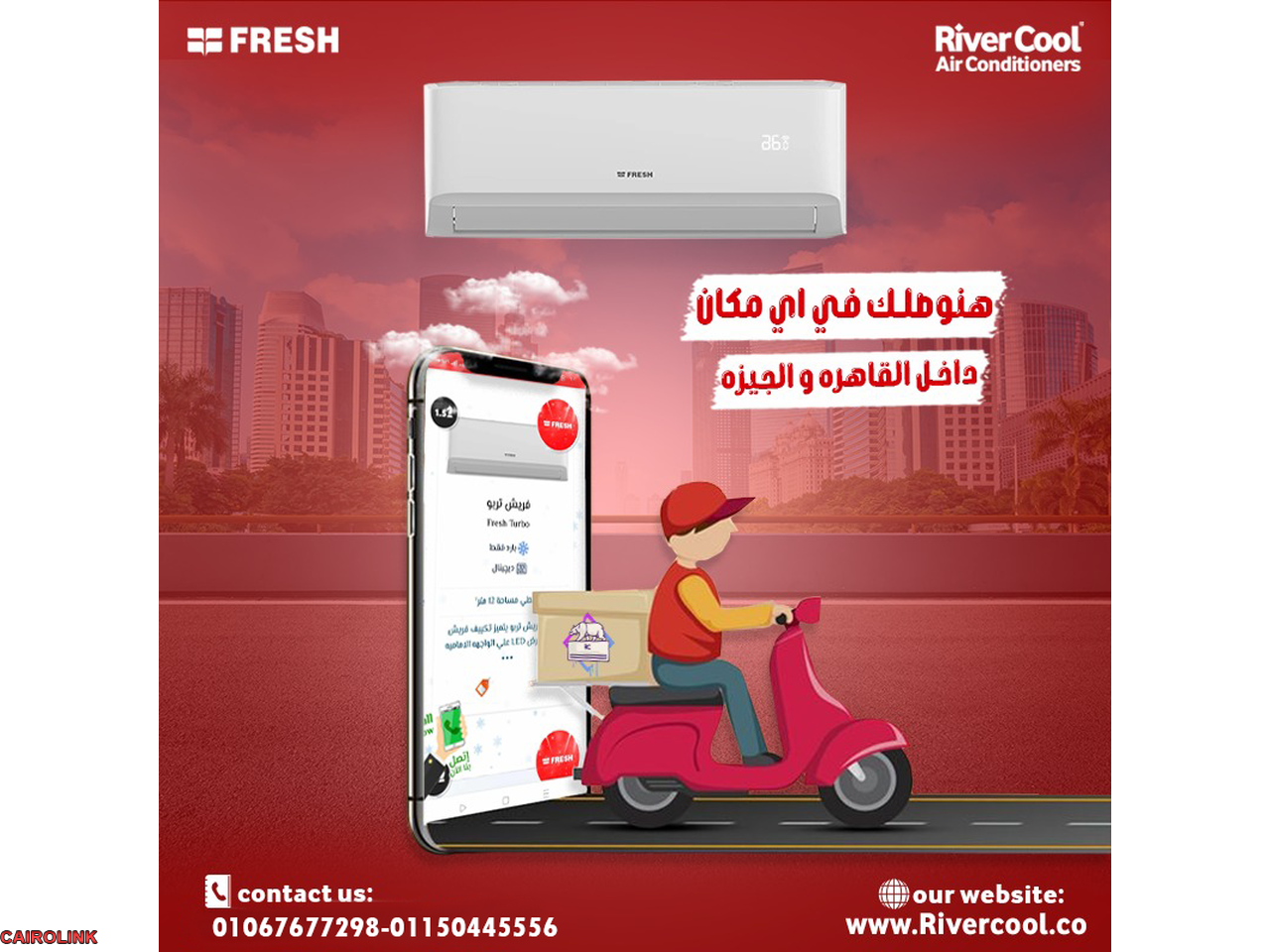 ريفر كول عروض مميزة على تكييفات فريش 1.5 حصان بارد مع تقنية التبريد السريع والهواء من الاتربه والفيروسات بكفاءه طاقه B معاه شاشه ديجيتال لرؤيه الحراره والاعطال بوضوح بضمان لمدة 5 سنوات متاح خدمة التركيب مجانا في القاهرة والجيزة في غضون يوم واحد فقط. فرصة ممتازة لتحصل على جهاز تكييف عالي الجودة بسعر مناسب ومع تسهيلات في الدفع للاستفسار /☎
