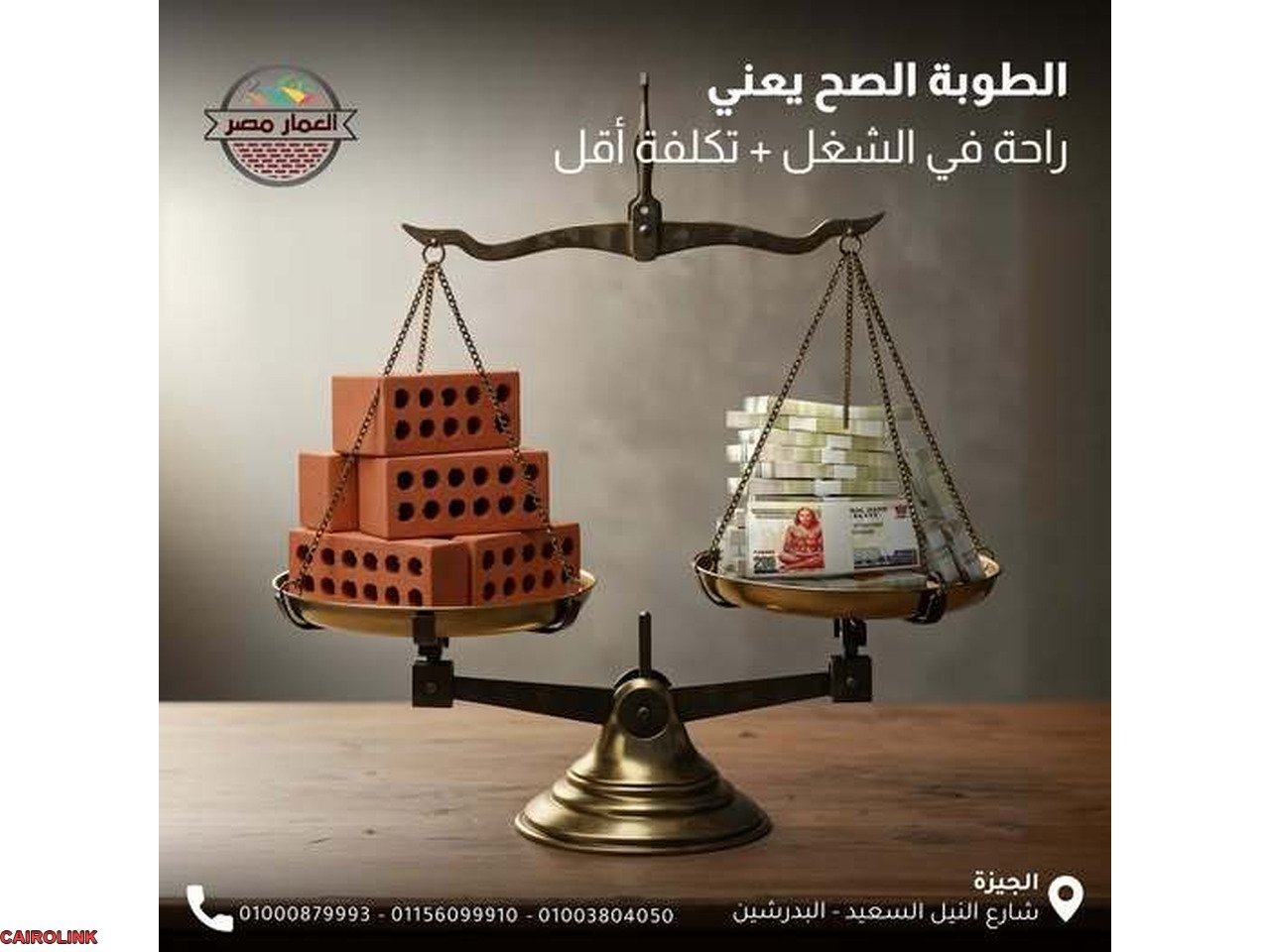 في العمار مصر - El Ammar Masr إحنا بنقدم لك أفضل الطوب بأعلى معايير الجودة عشان شغلك يبقى أسهل، أسرع، وأوفر.