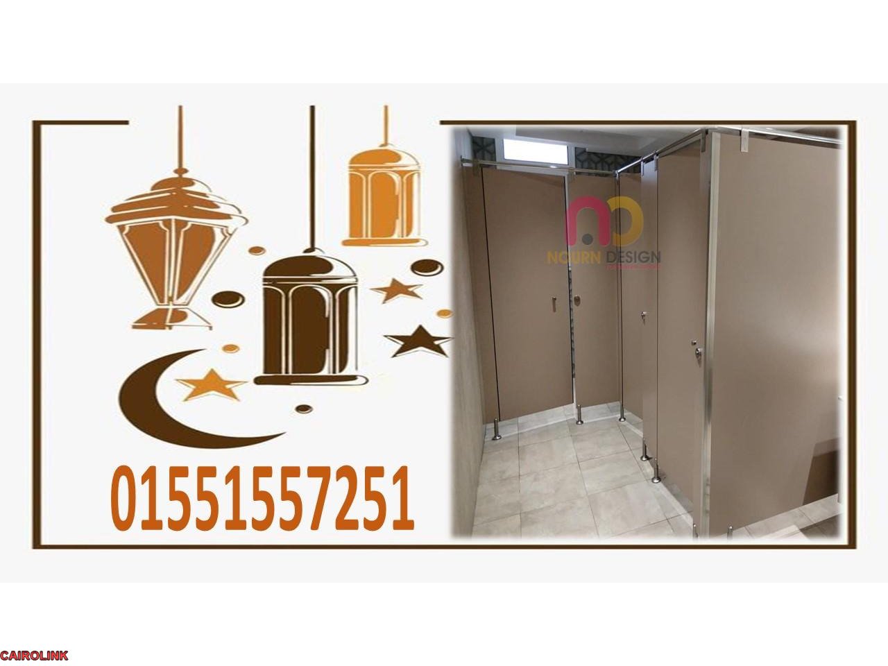 كومباكت HPL من نور ديزاين يستخدم في قواطيع الحمامات وفواصل المباول وبارتيشن حمامات سمك 12 ملى والاكسسوار استانلس 304