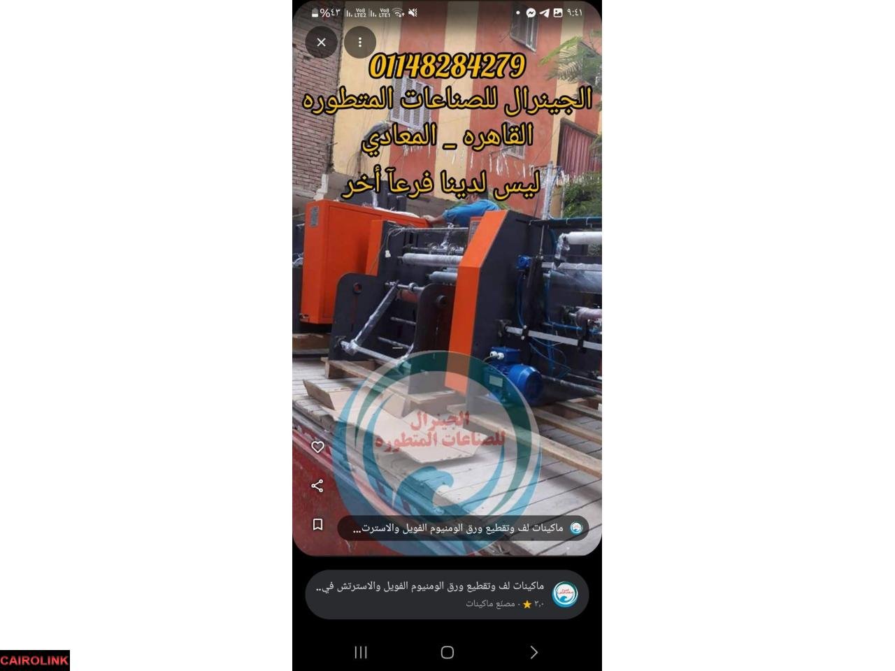 الجينرال للصناعات المتطوره.بالمعادي مصنع معتمد ومتخصص فى إنتاج اقوي واحدث الماكينات .. أعلى خدمه ما بعد البيع. واقوي الخامات المصنعه منها الماكينات .. نقوم بتصدير الماكينات لجميع دول العالم 90% من مصنعون الومنيوم الفويل والاسترتش بمصر والشرق الأوسط يعملون بماكينات الجينرال للصناعات المتطوره بالمعادي.